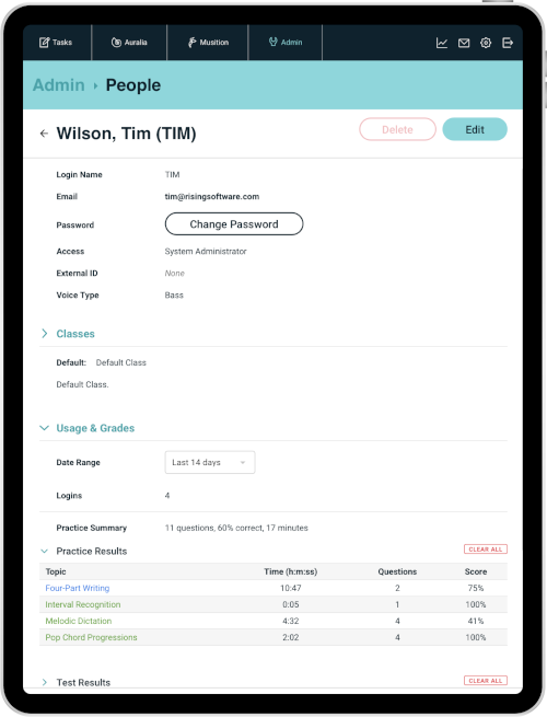 Auralia has an excellent reporting system, allowing you to easily monitor progress and provide the best direction for your students.