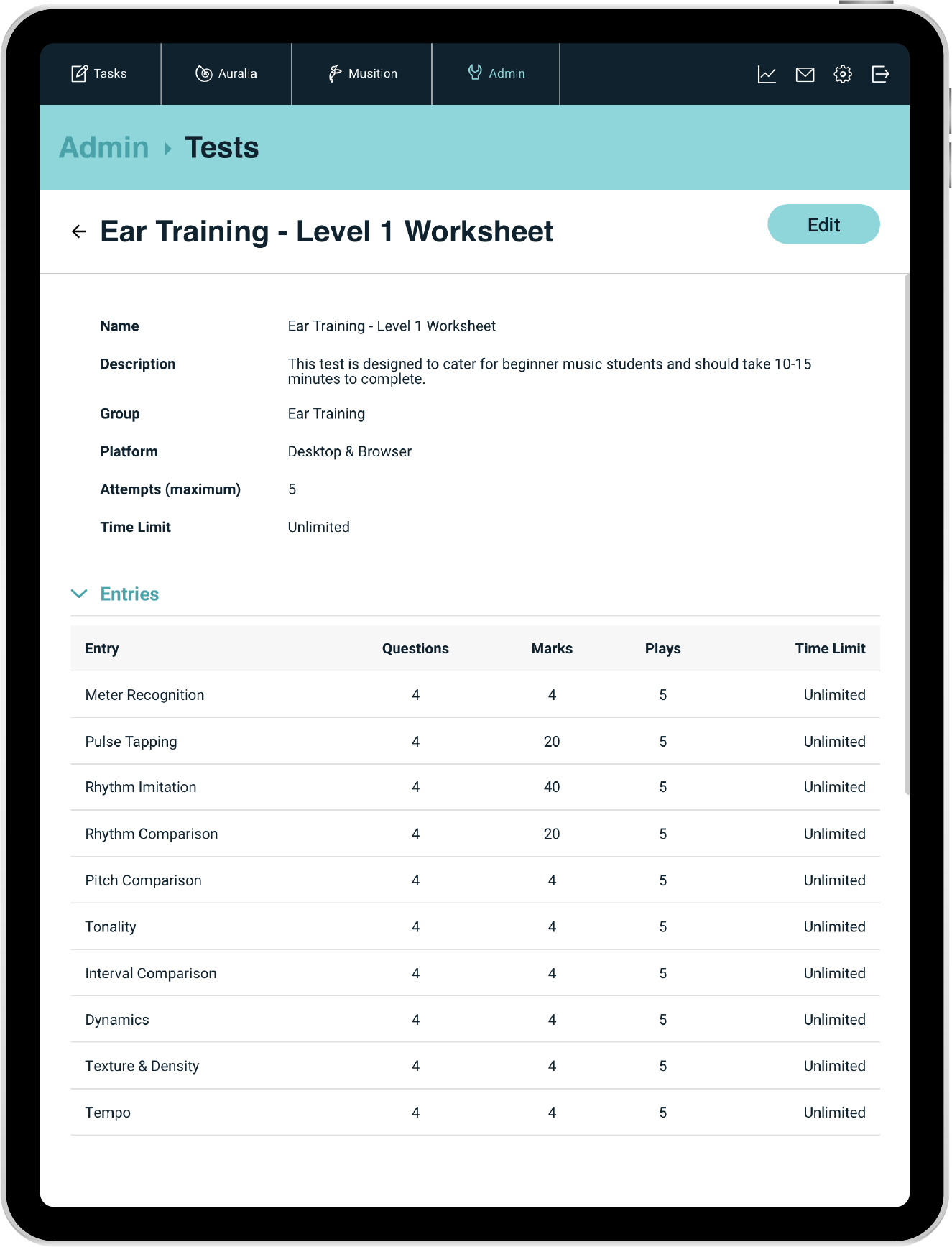 Create tasks and courses using the included content or import your own. Using Auralia will save you endless hours of preparation and grading.