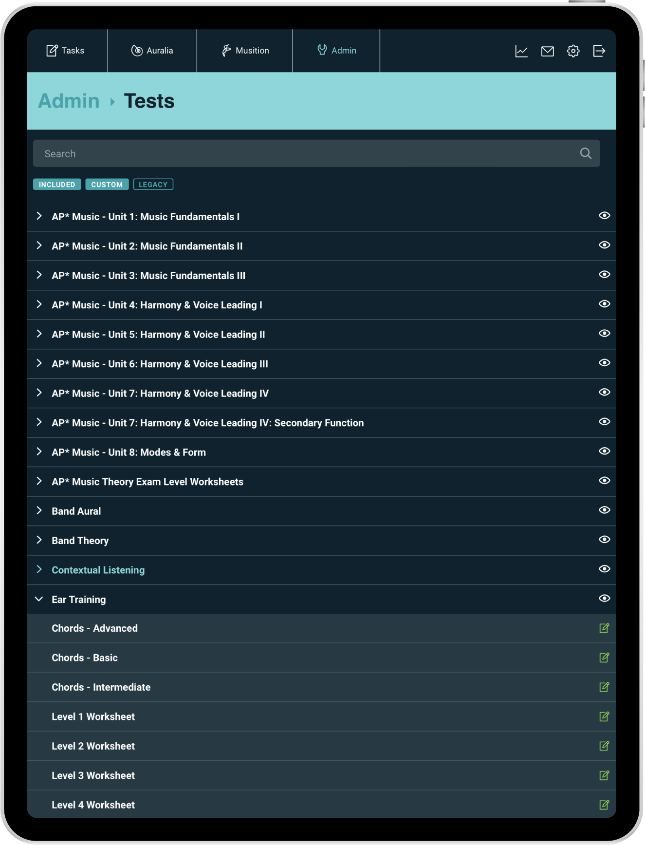 Tests are one of the most important features in Auralia. They allow teachers to assign sequences of questions; giving absolute control over the number and type of questions that students will attempt.