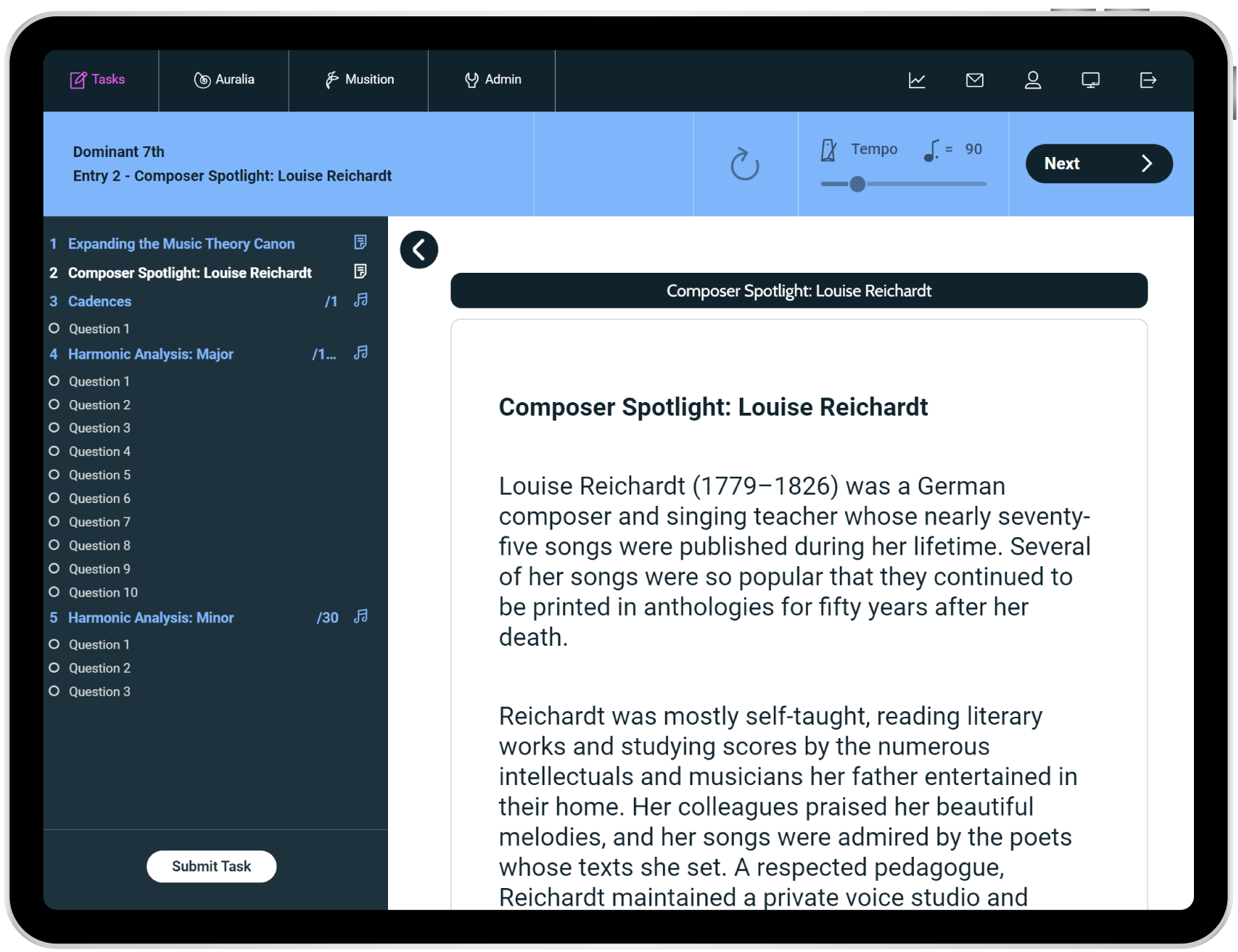 Dr. Maust’s work aims to present the works of underrepresented composers of Western classical music who were active from c.1600–1900. Musition now includes 9 worksheets that align with the anthology - dominant 7ths, predominants, 64 progressions, secondary dominants, secondary leading tone chords, augmented 6ths, Neapolitan chords, modal mixture and diatonic modulation.