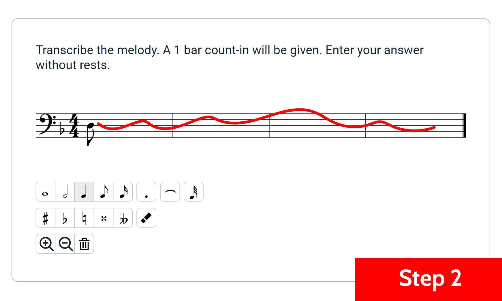 - Once the melody plays, observe the general contour and the rough location of any distinguishing features