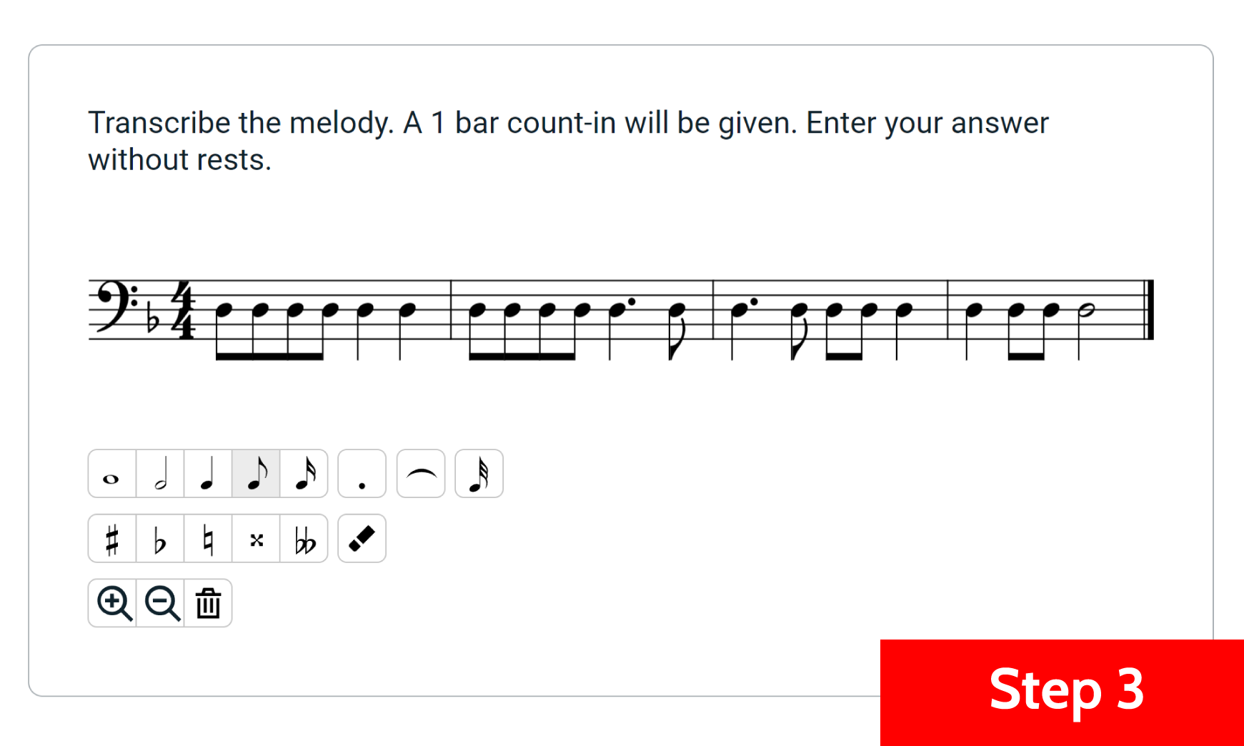 - Try to notate the start and end of the melody including both rhythm and pitch material, and then work your way towards to the middle of the melody over additional listenings.
