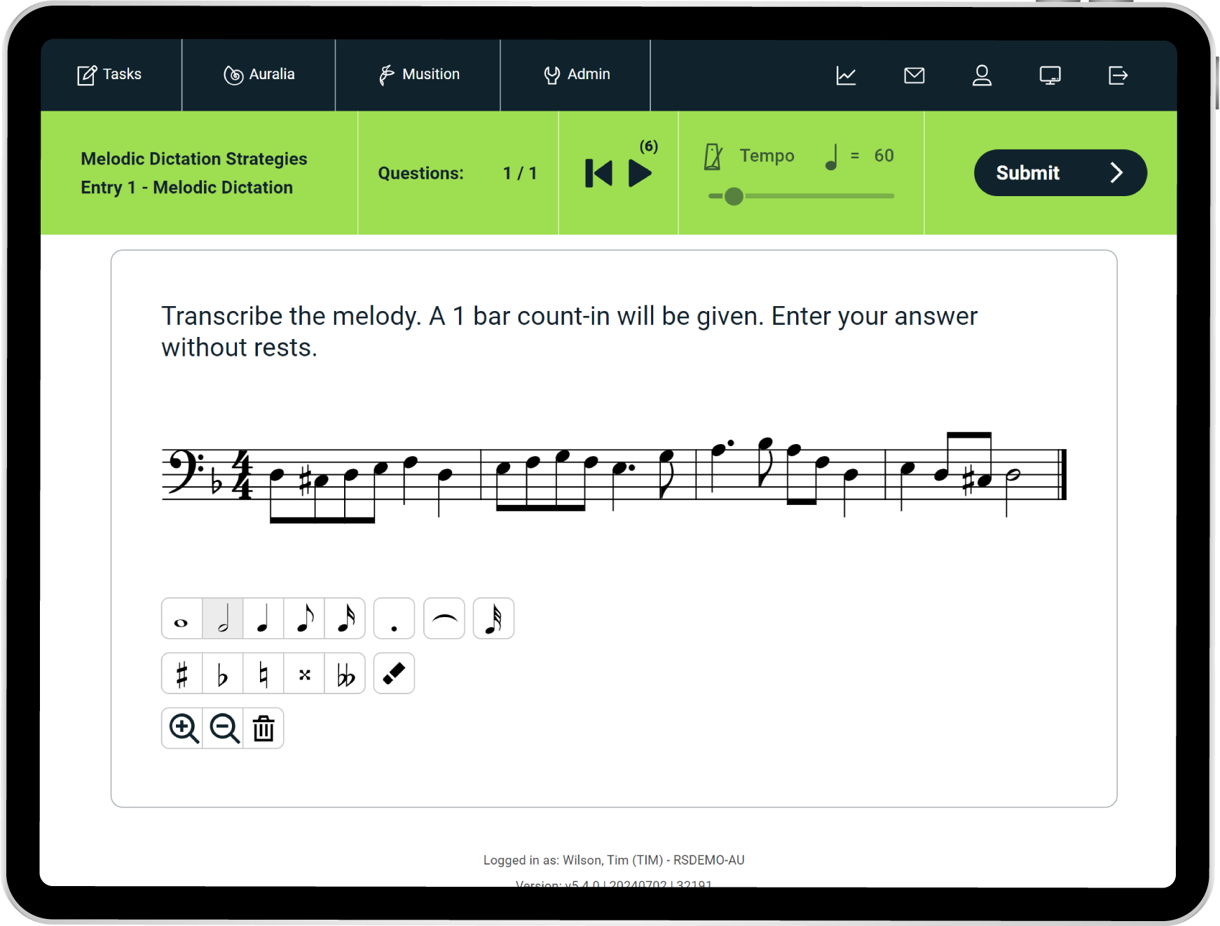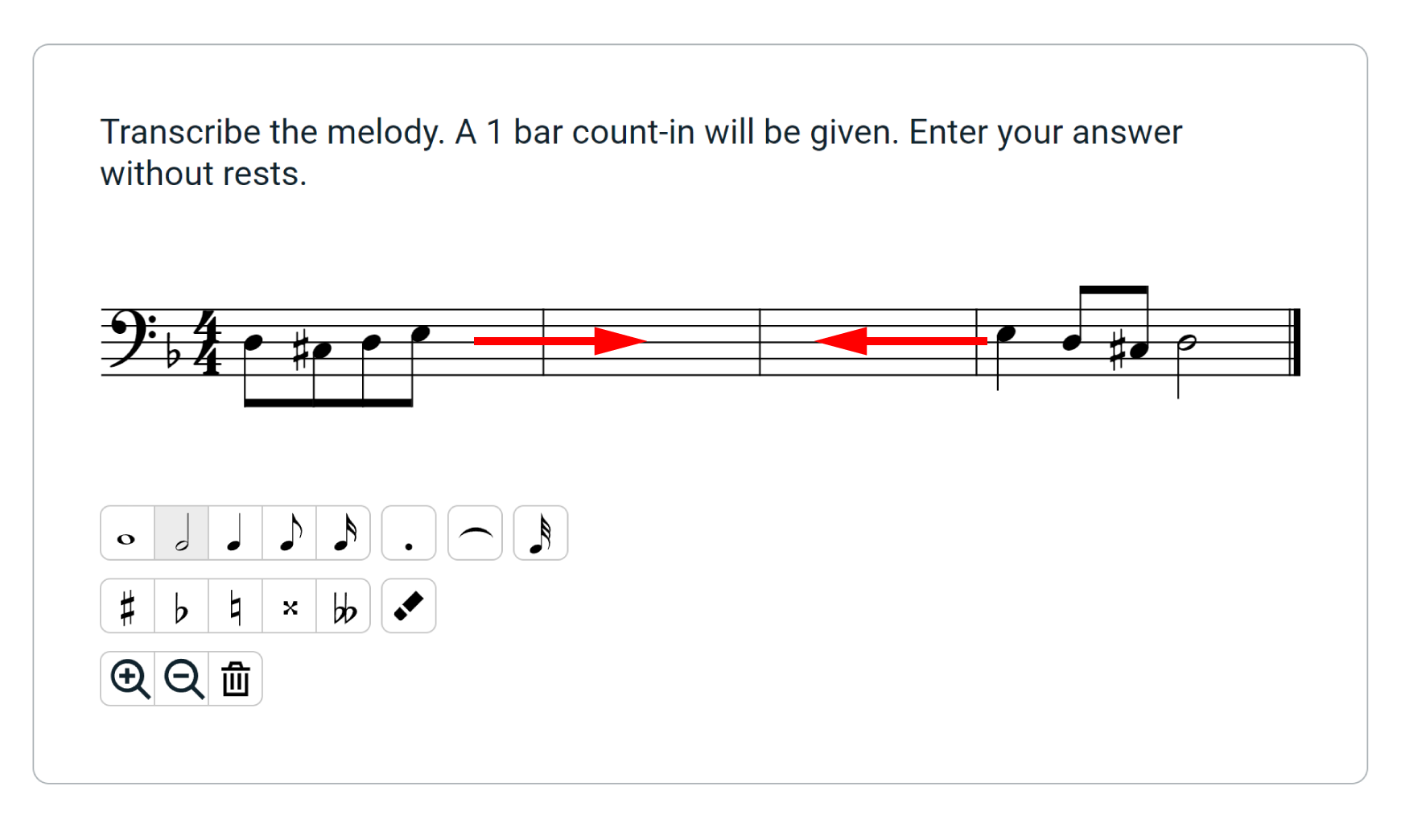 Whilst there are many shared skills between dictation and transcription, often transcription is considered to be a more ‘open’ task. The replays may not be restricted, and the student may be able to use an instrument to help figure out parts and transcribe the music. Sometimes the transcription may also include notating multiple parts or layers from the recording; melody, chords, bass.