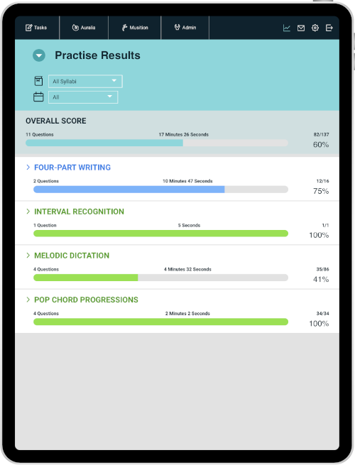 When students practise their music theory in Musition, we record many things; what and when they practised, for how long they practised, and most importantly, their scores.