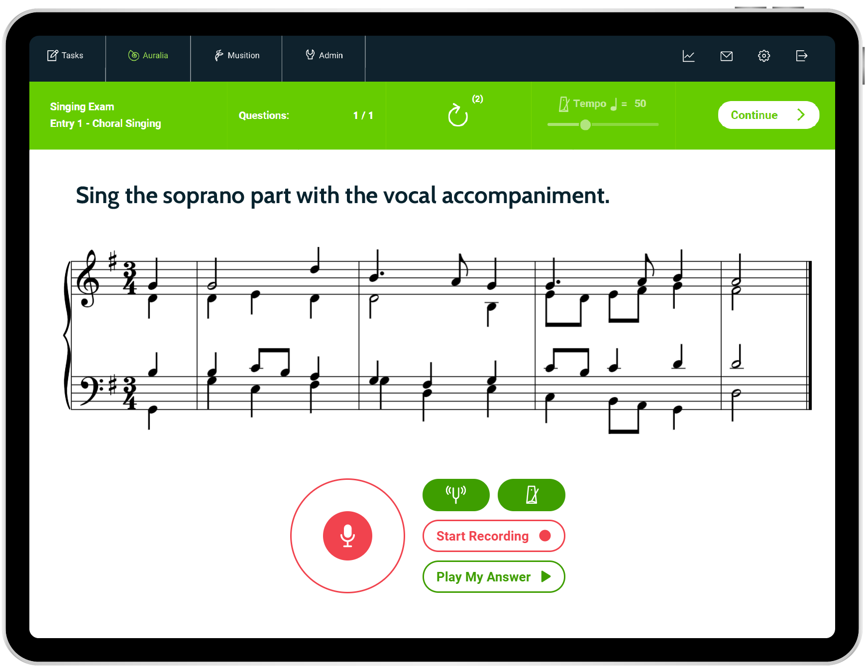 This is perfect for sight singing drills, keyboard and piano tests, plus developing imitation and improvisation skills. You could even use it for submitting performance recordings (entrance exams etc), sight-reading or sight-transposition questions.