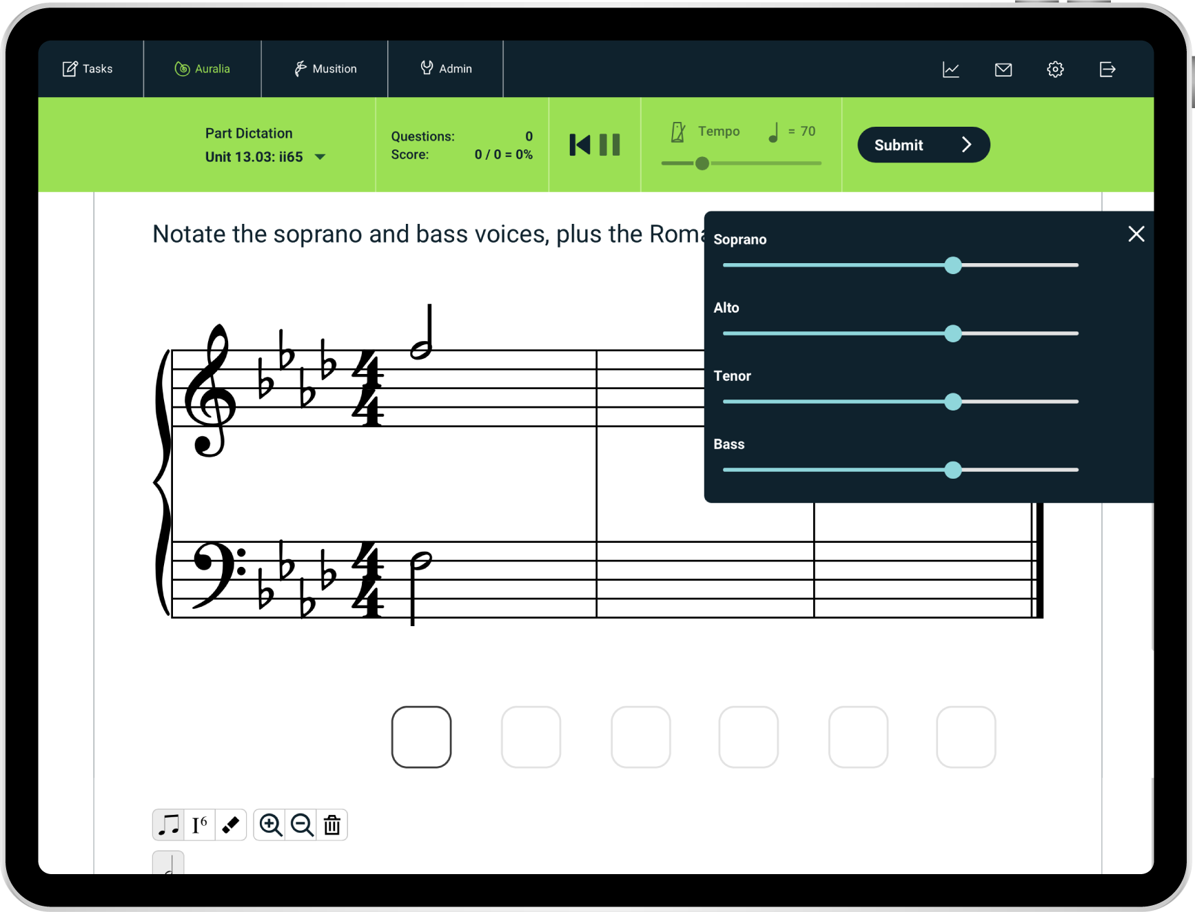 - Mixer Control - Allow students to adjust the level of each voice/part