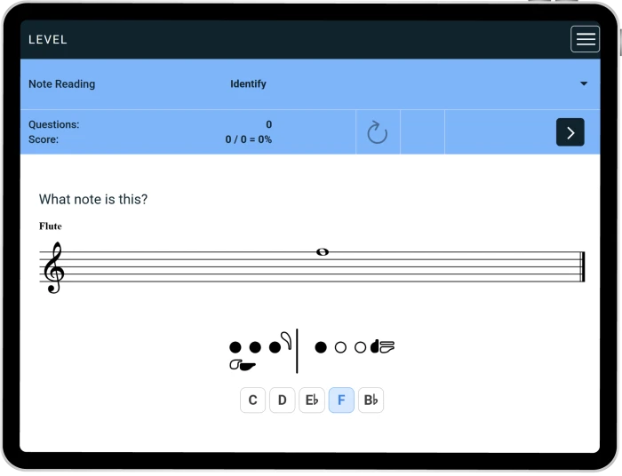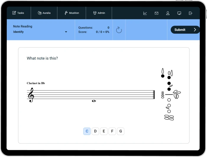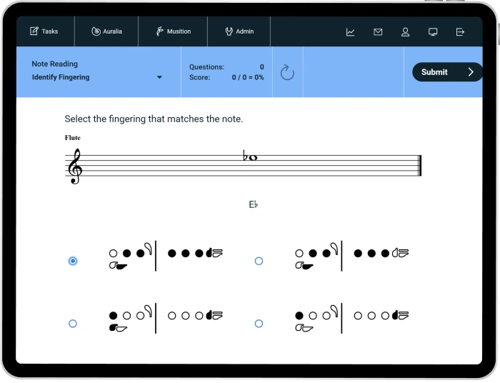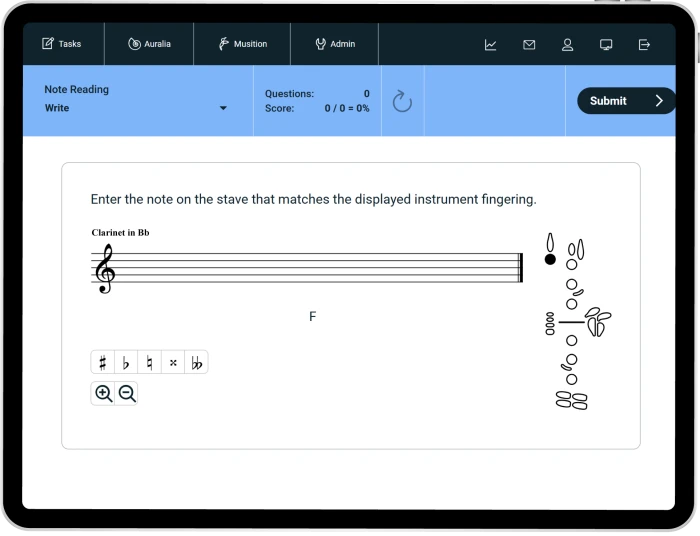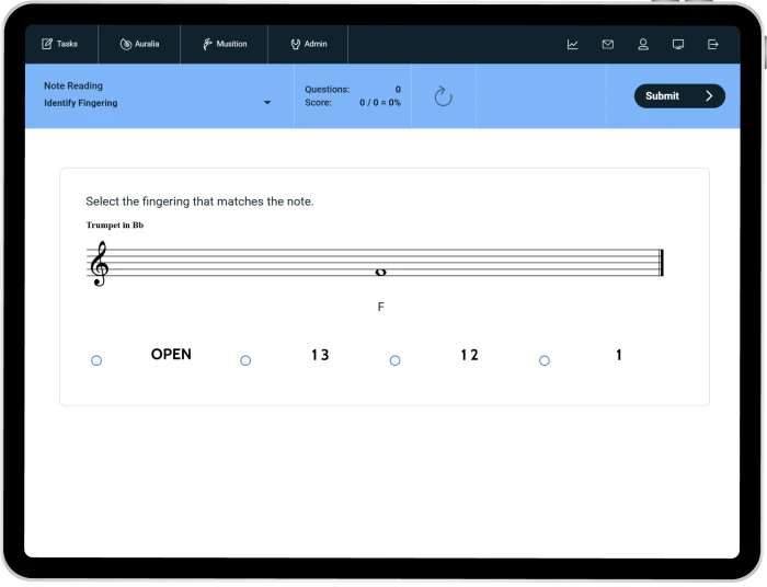 Auralia & Musition now include a new beginner band theory and aural curriculum with an incredible instrument fingerings feature which integrates with the Musition note reading topic. It helps students link note names and notes on the staff, with fingerings on their instruments and is perfect for any band or instrumental program.