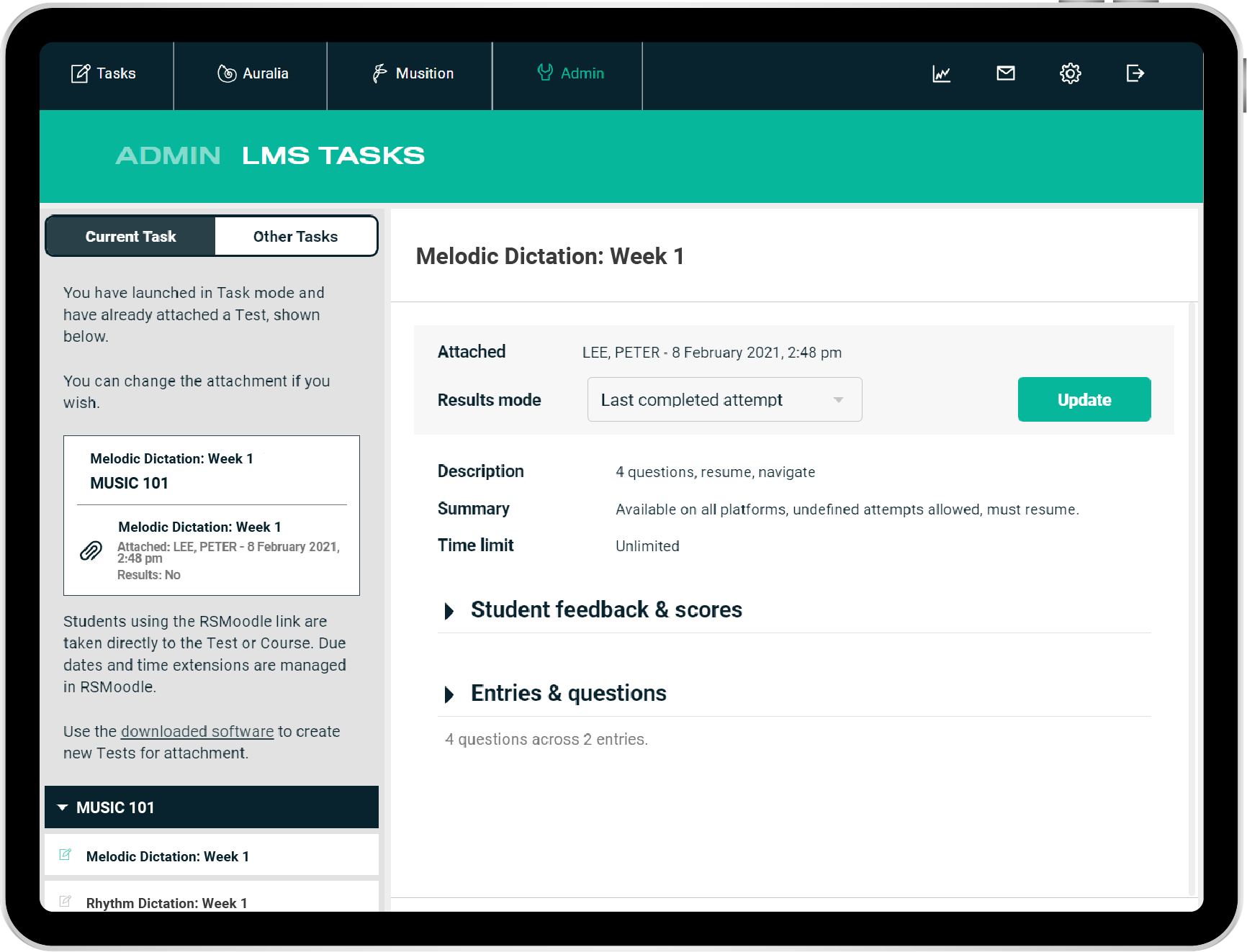 If you’ve integrated Auralia® and Musition® with your LMS (Canvas, Blackboard, MusicFirst…), you’ll be excited to know that you don’t have to launch the downloaded software to view and link your tasks!
