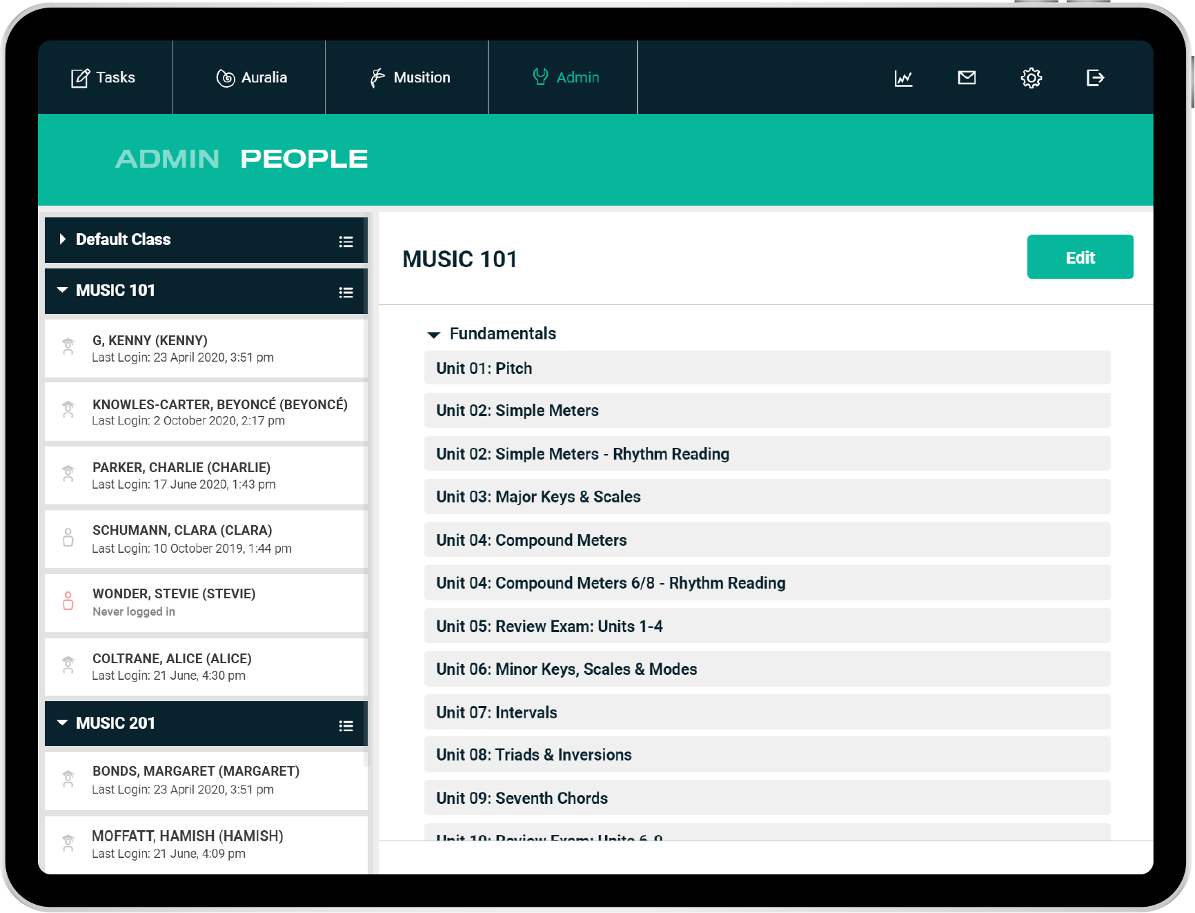 New to Auralia® and Musition® is the ability to view your students' practise, test and course results without having to run a report!