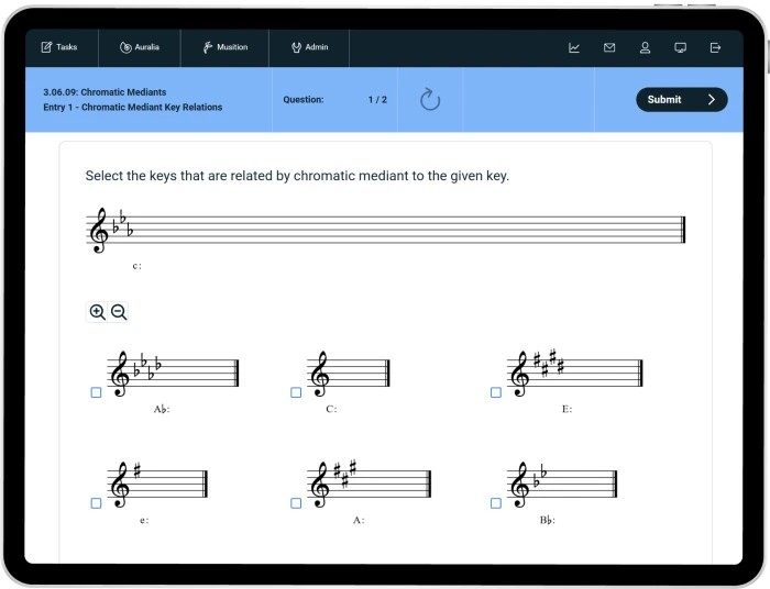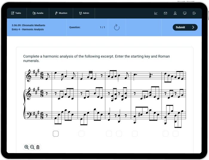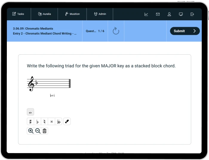 Musition now includes some cool new worksheets covering chromatic mediants, CTo7, and respelling viio7 & Ger+6. These will feature chord writing and harmonic analysis questions and are great for university level students who are studying chromatic harmony and modulation.