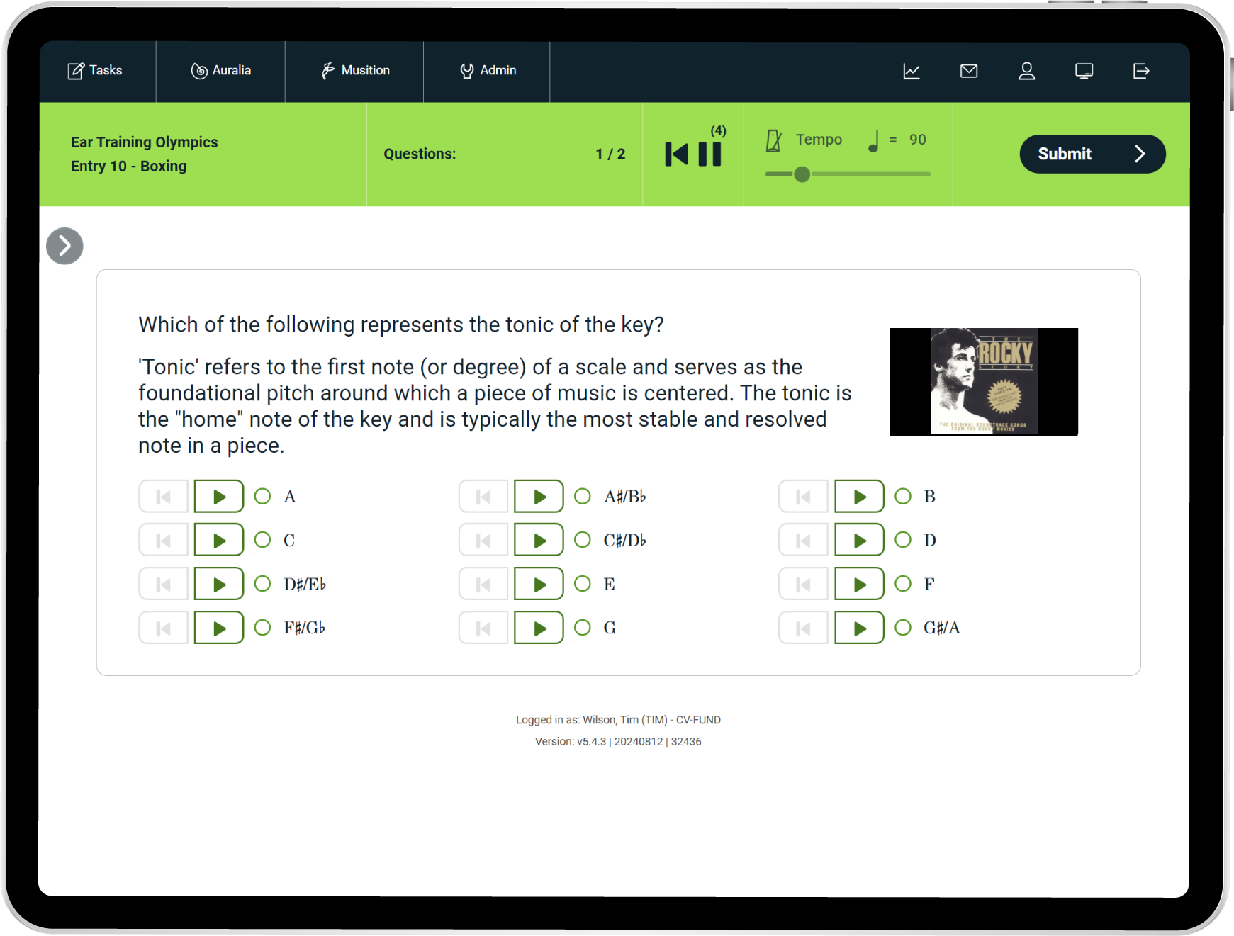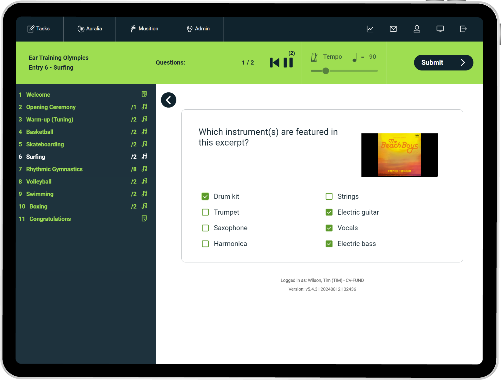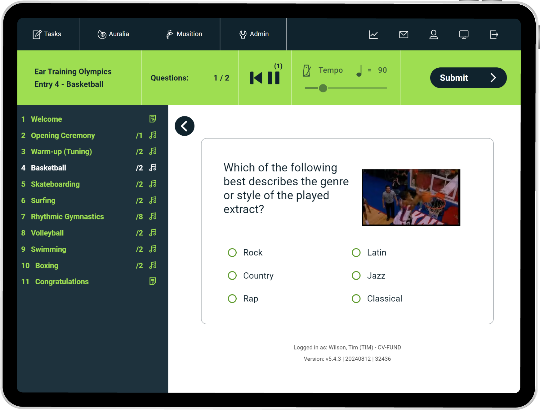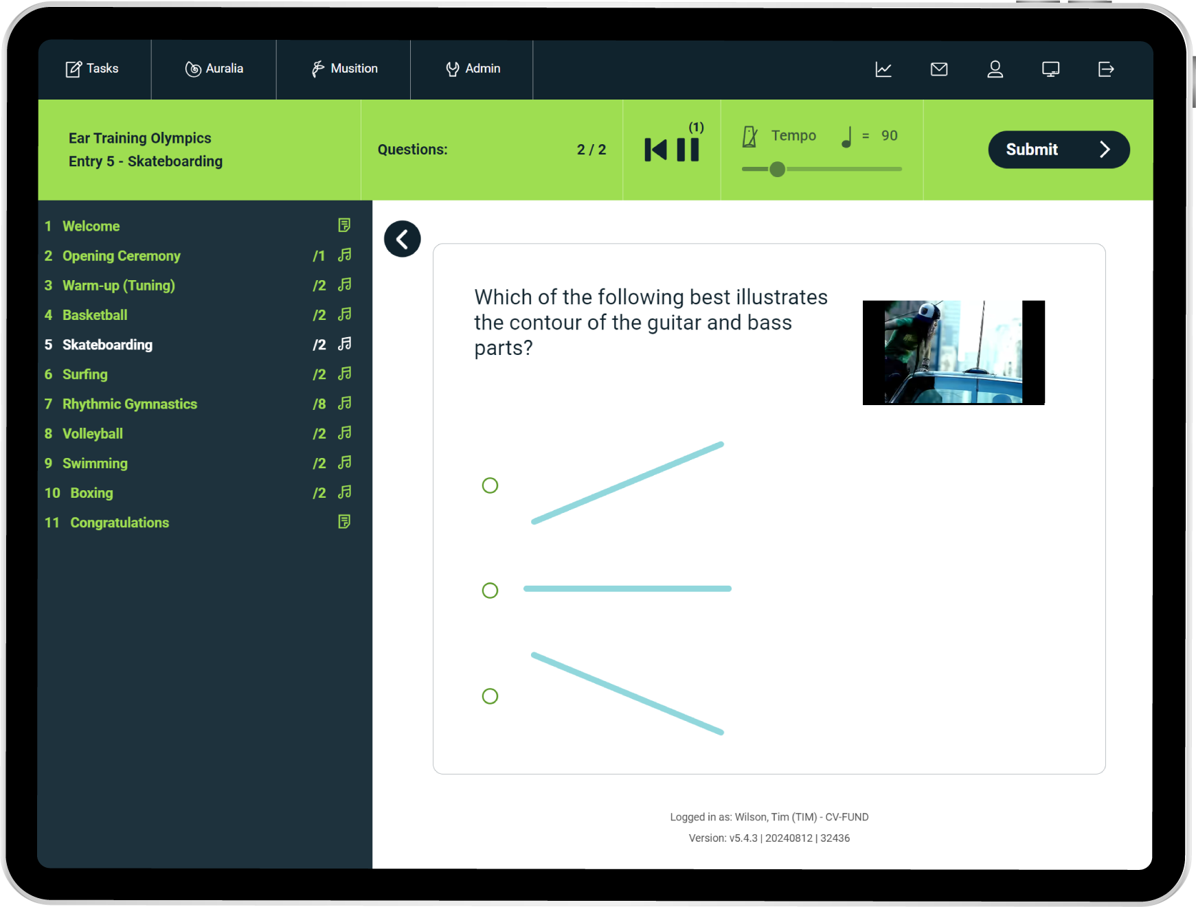 The 'Ear Training Olympics' offer students the chance to hone their aural and musicianship skills whilst participating in multiple 'events' including basketball, surfing, swimming, rhythmic gymnastics, skateboarding, boxing and volleyball.