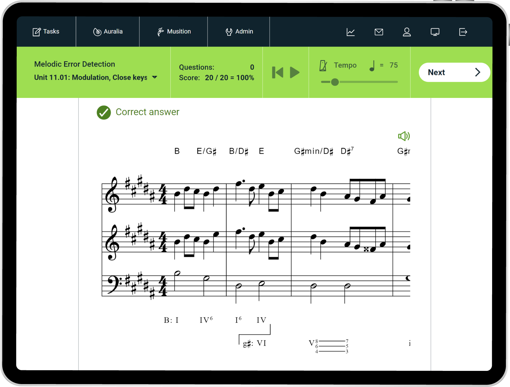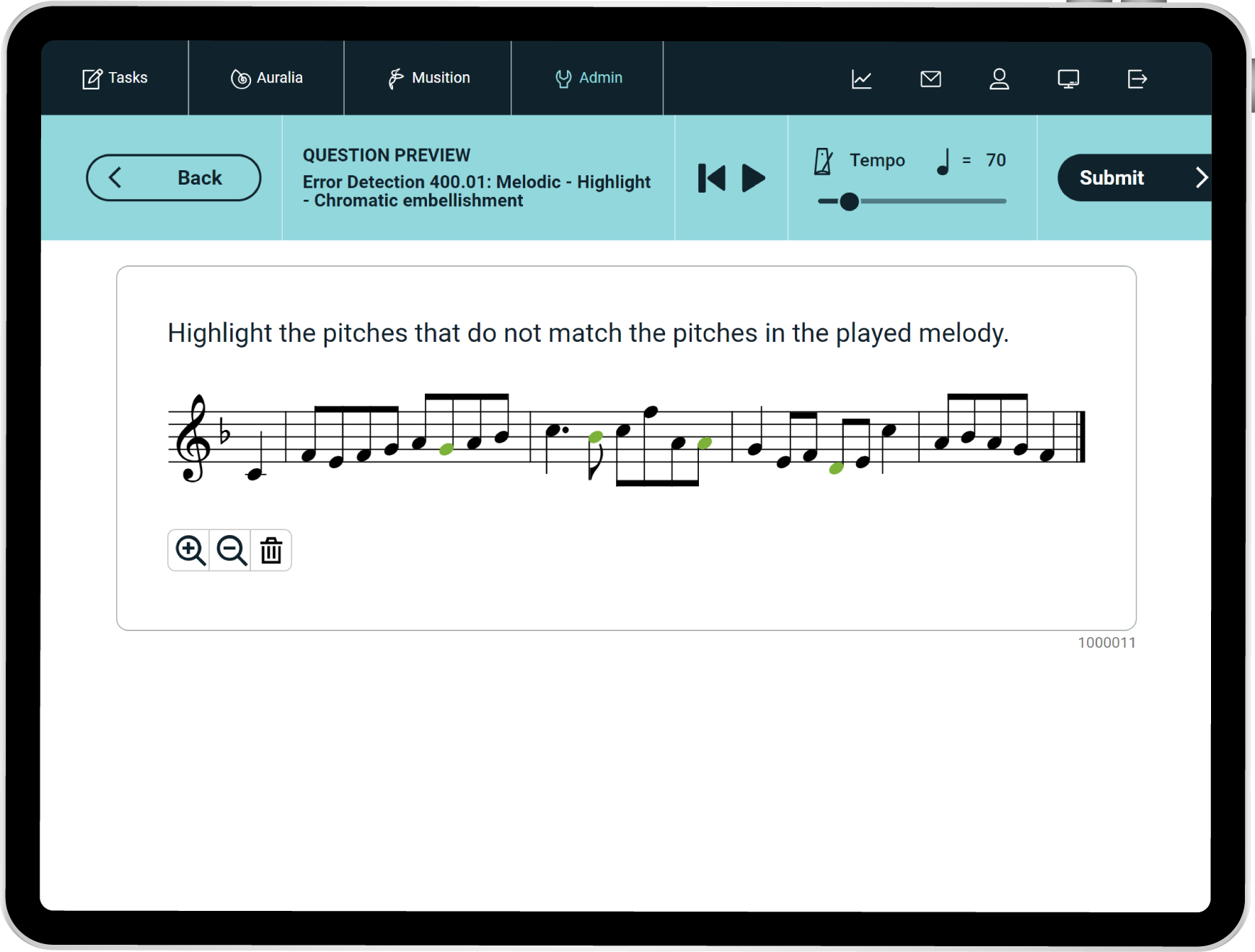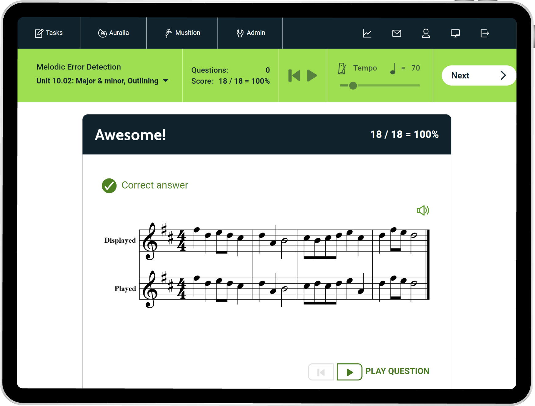 Auralia now includes 500+ melodic error detection questions where students have to identify performance errors in a played excerpt and edit the displayed notation to match what was performed. These exercises are fantastic for preparing students for real-world situations where they may need to identify and correct mistakes in rehearsals or performances.