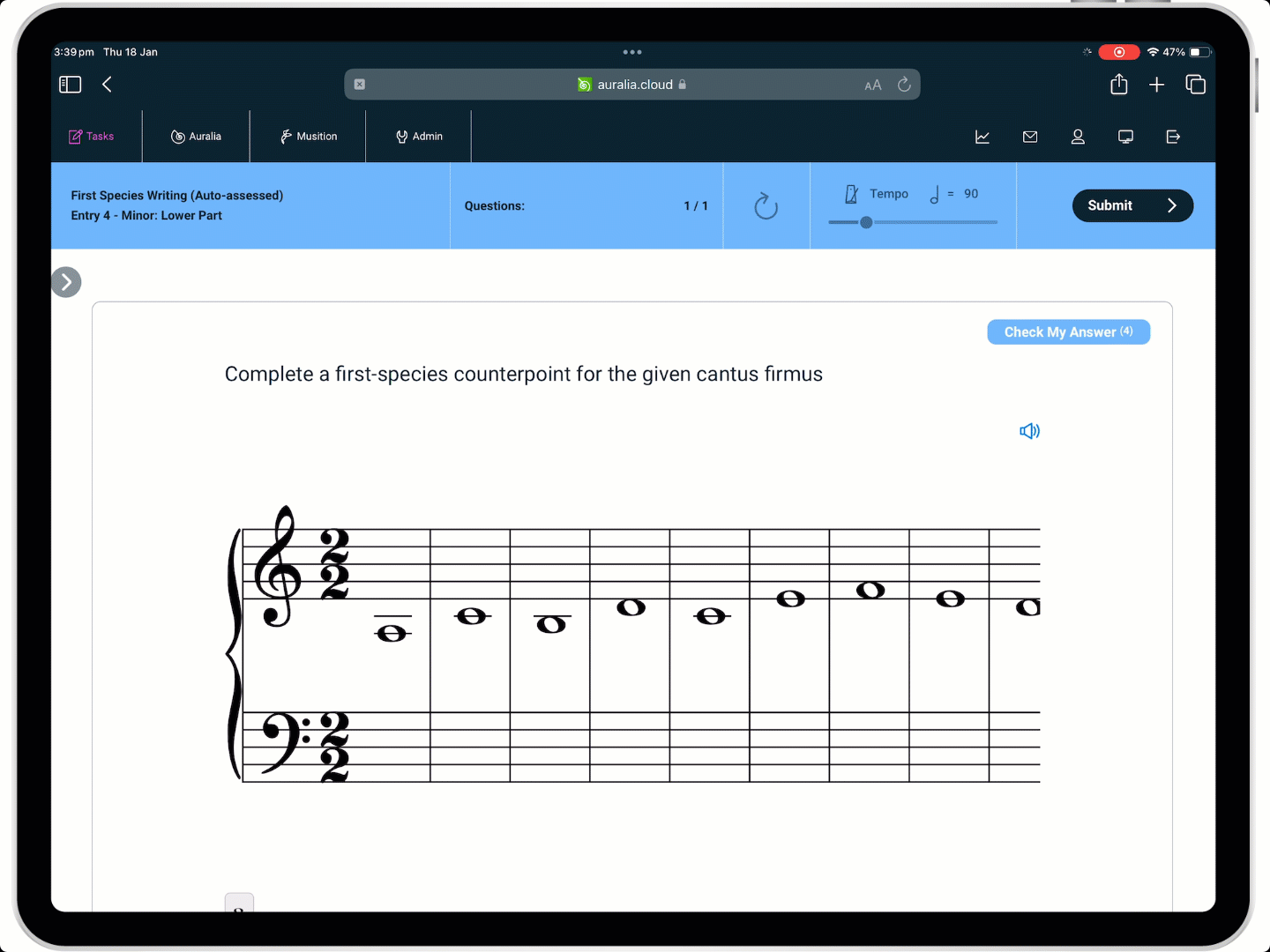 Introducing Musition's new first species counterpoint assessment feature! Species counterpoint is an essential skill for any music student to learn, as it teaches the basics of melody writing and the relationships that are formed between two or more simultaneous melodic lines. Musition now provides automatic assessment with immediate feedback for students.