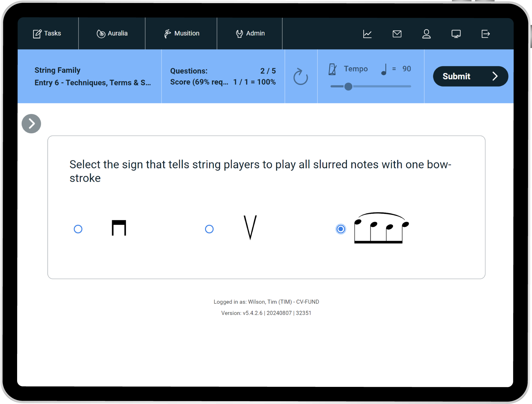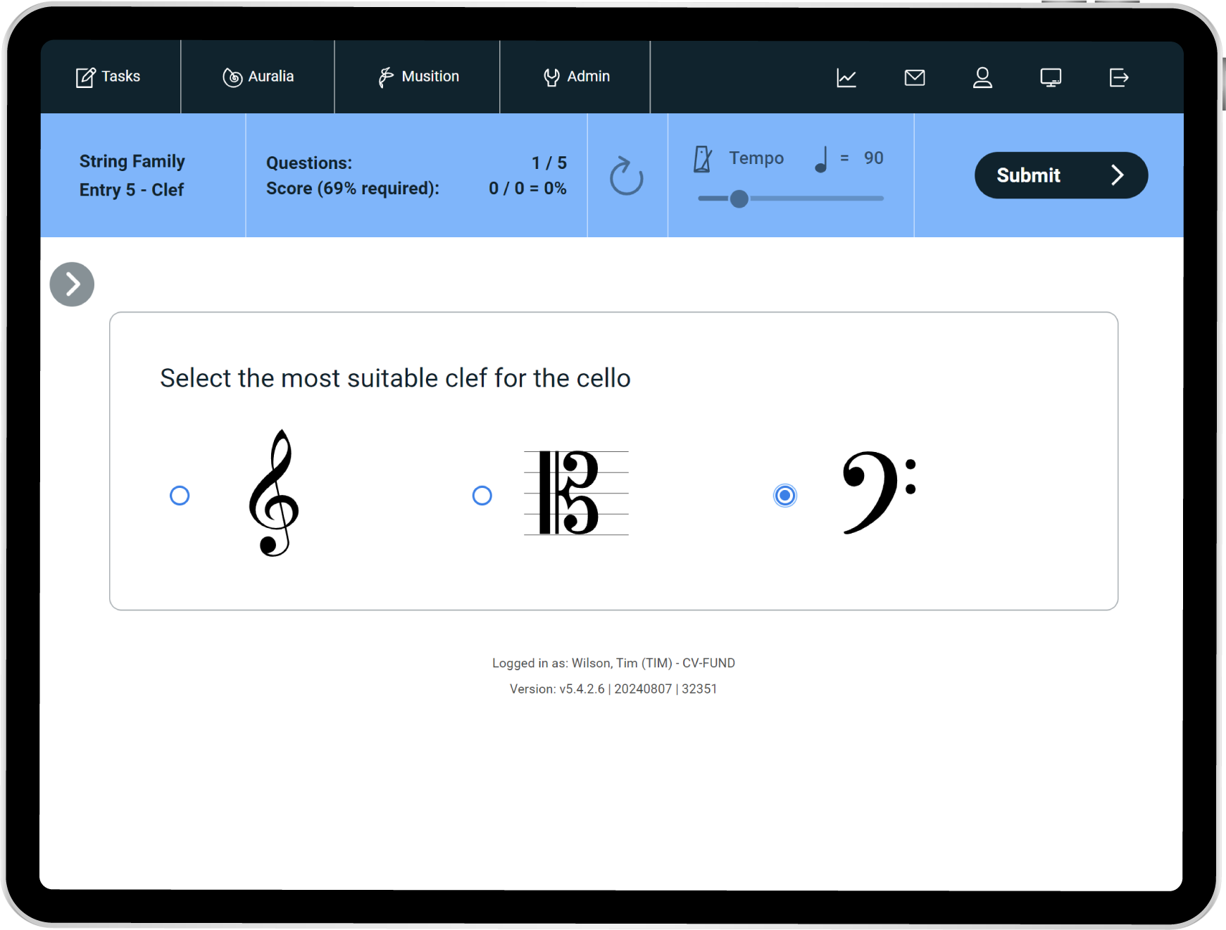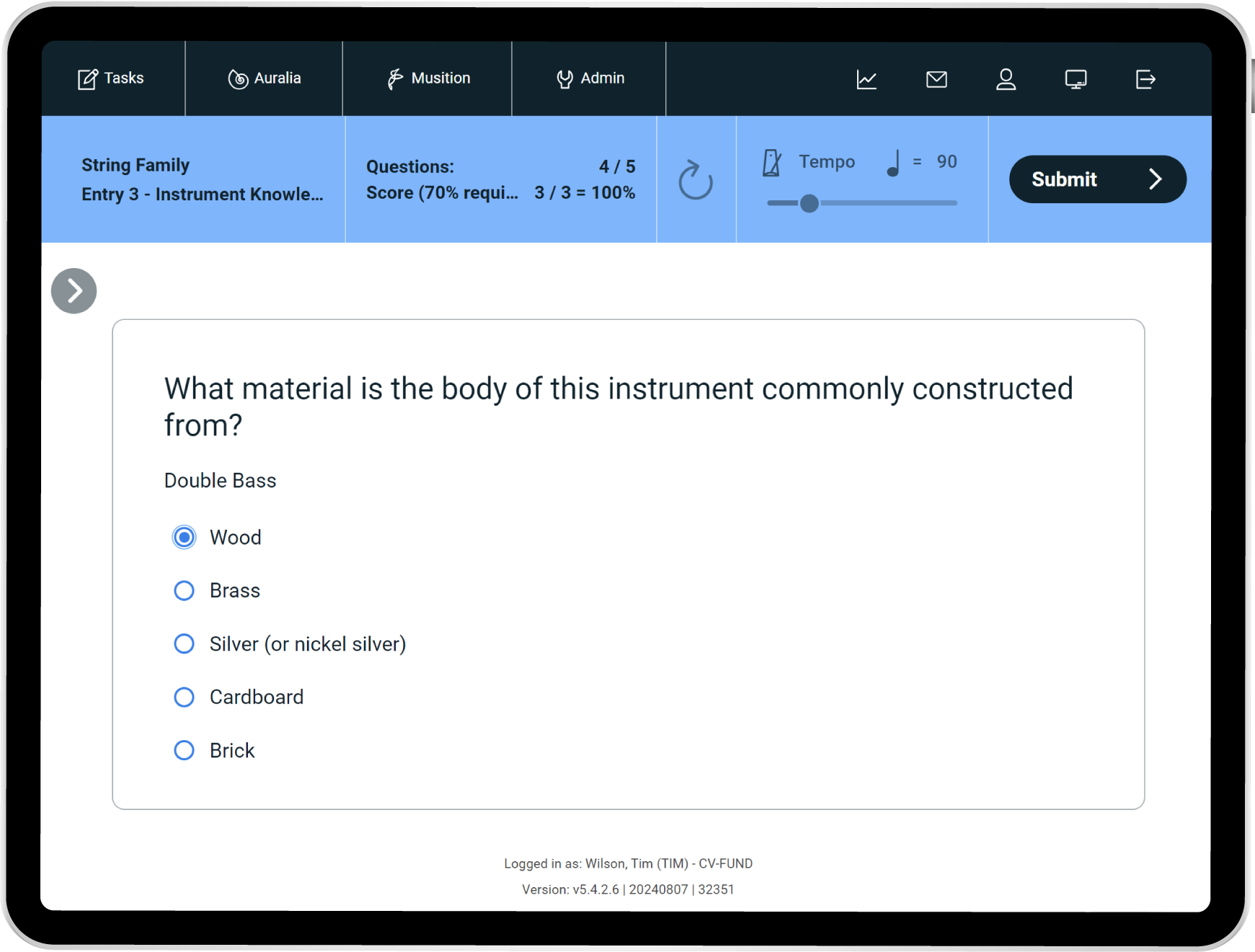 Musition now features five new courses based around the instruments of the orchestra. Each course focuses on a particular instrument family and includes questions on instrument recognition, sound production, clefs, pitch, techniques, terms and symbols. Students can also engage with the instruments of the orchestra lessons featuring video demonstrations and explanations of each instrument.