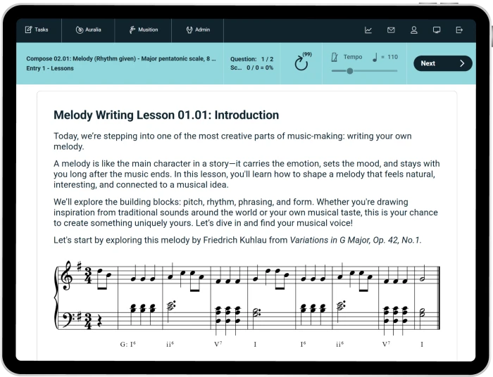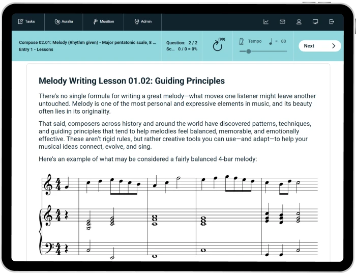 Auralia & Musition have just released a fresh suite of composition-focused content in Auralia and Musition, designed to ignite creativity and build foundational skills in young composers. The new module includes eight structured worksheets and lessons that guide students through the essentials of musical composition—no prior experience required.