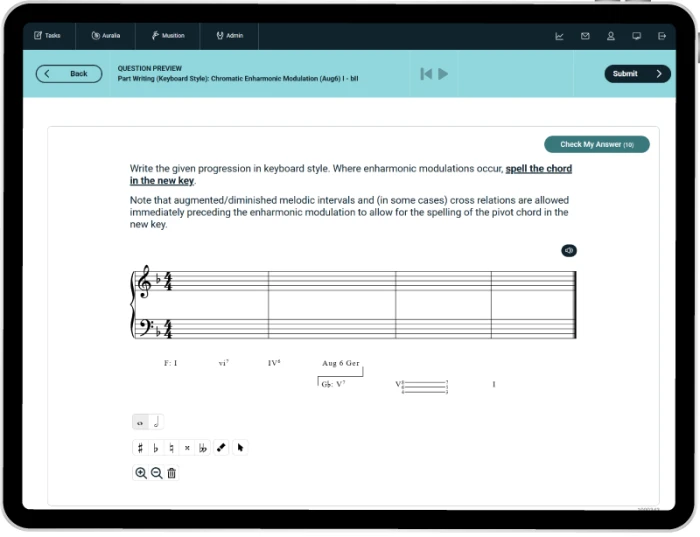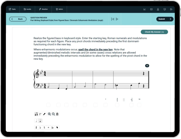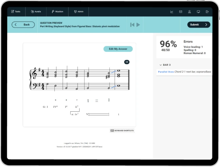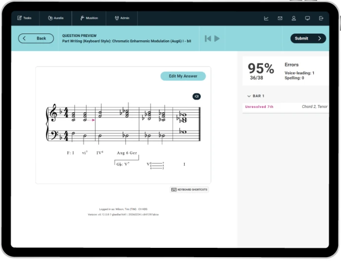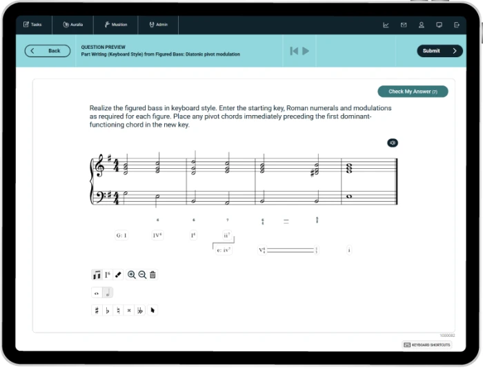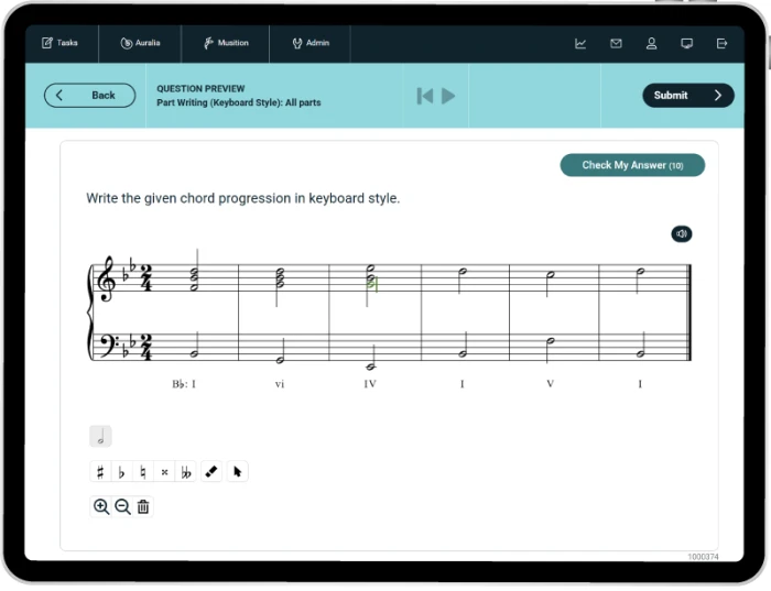 - Auto-assessed keyboard style part writing