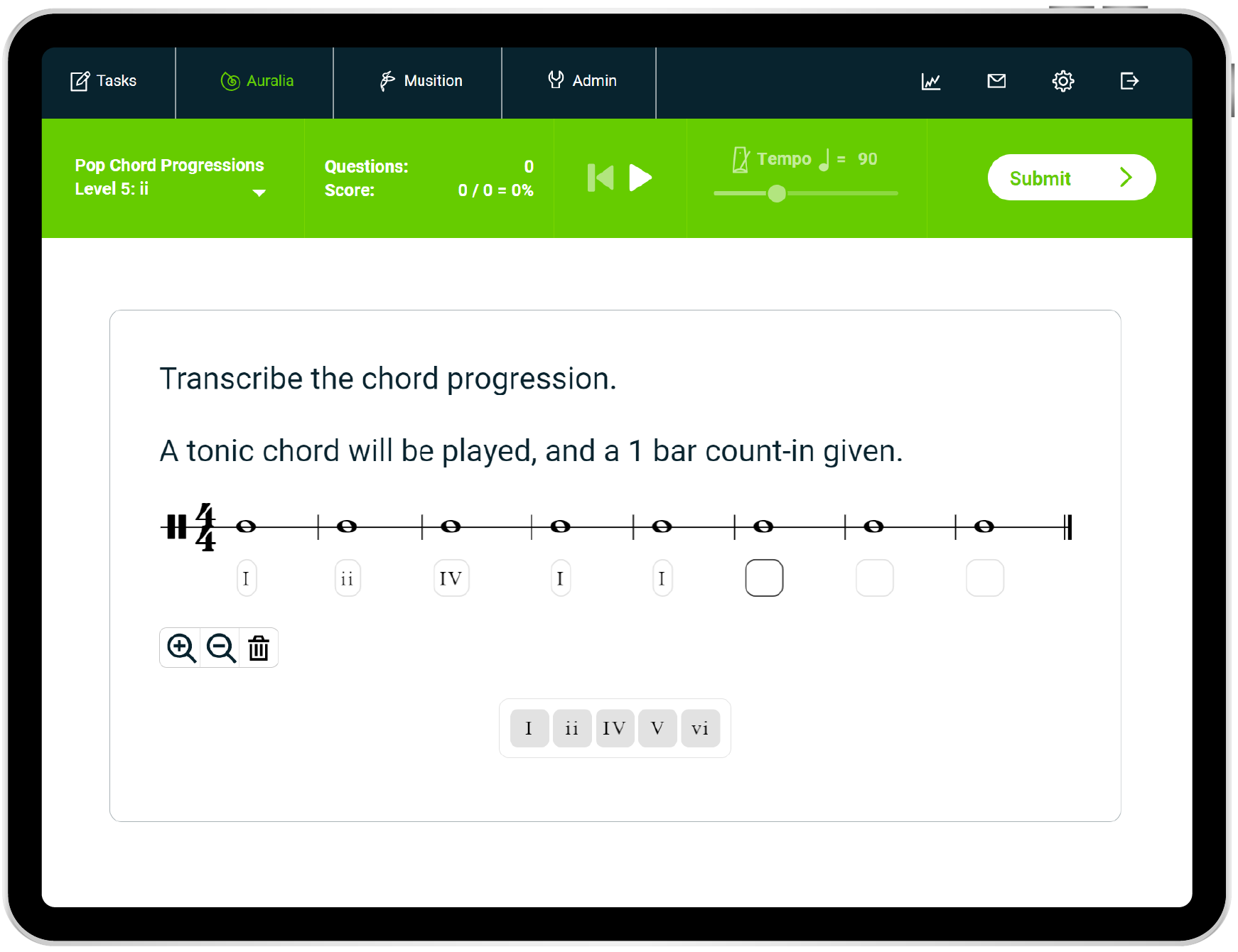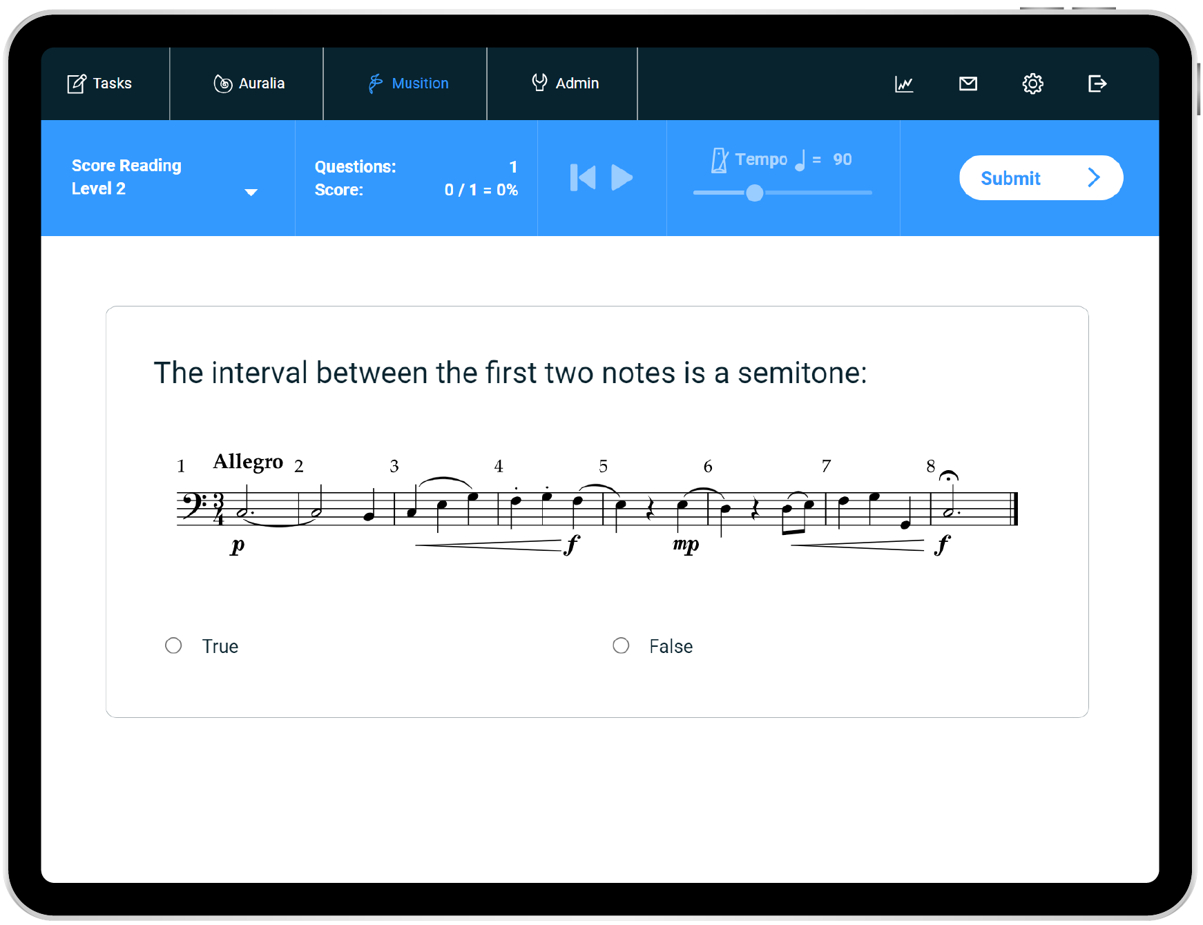 The new Score Reading topic introduces students to a whole new range of music fundamentals questions based around short excerpts. This includes questions on performance directions, note names, scale degrees, intervals, scales, meter, and chords.