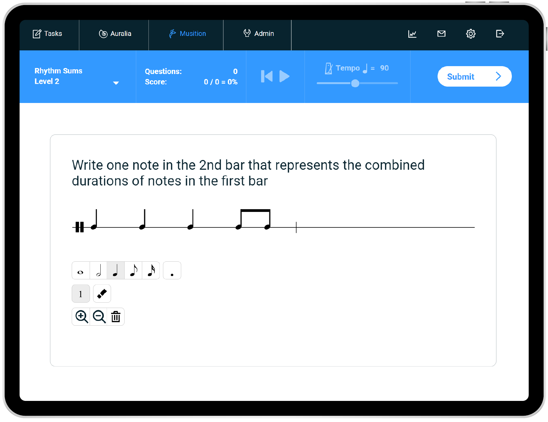 The new Rhythm Sums topic is great for helping students understand rhythm basics and the relative durations of rhythmic values.