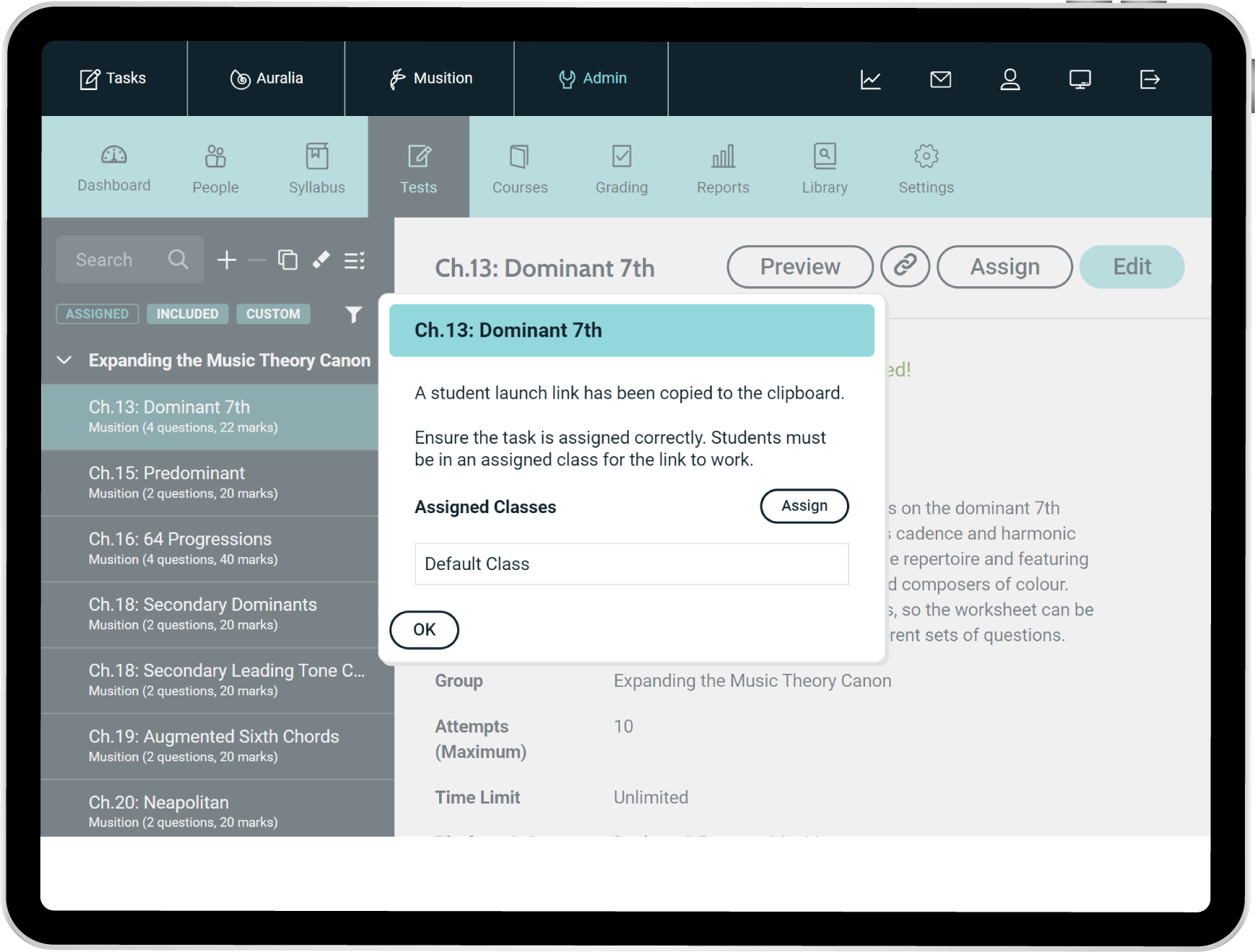 Note that link sharing is NOT relevant if you're using an LMS such as Canvas, Moodle, Blackboard, MusicFirst or SchoolBox - continue to link your tasks as before, you don't need to be able to share URLs, you already have direct links to your tasks.
