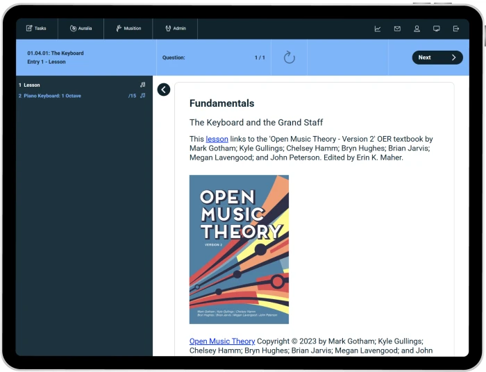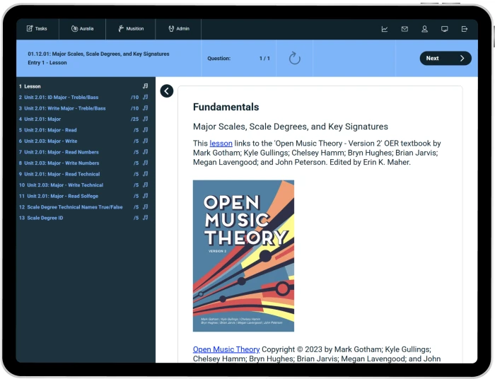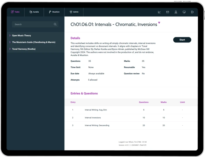 Auralia & Musition now include assignments aligned to your favorite music theory textbooks. Featuring clear book, chapter and topic labels, Auralia & Musition can function as the perfect workbook to accompanying your textbook and provide students with automatically-assessed practice.