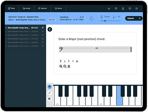 Featuring clear book, chapter and topic labels, Auralia & Musition can function as the perfect workbook to accompanying your textbook and provide students with automatically-assessed practice.