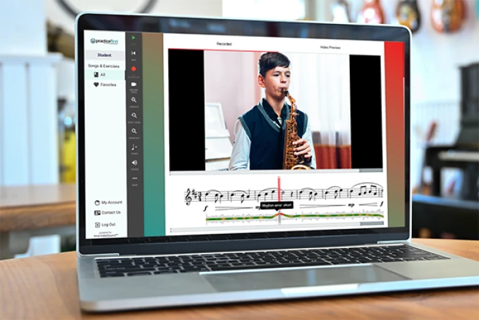 Better understand students' practice habits by capturing their practice sessions with the built-in audio and video recording features. Once the student's work is submitted, review the audio and video recording alongside the automated assessment to gain insights on technique.